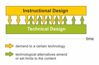 ![]() | They mutually interact during development. Working on content development (ID) begins earlier and has an effect on TD. Later it changes, the content may change as well, adjusting it to suit the technological options. |